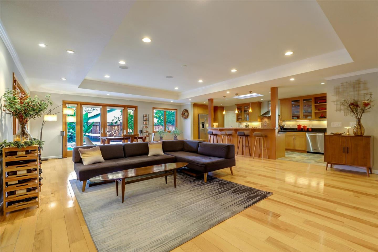 Location, location, location! Set on a peaceful, tree lined court this home is perfect for indoor/outdoor living. The entrance w/skylight starts the airy personality of this home. Fantastic open floor plan. The gourmet kitchen high end s/s appliances, double oven, and breakfast bar area for casual or extra dining space. Open Concept Living/Dining Room surrounded by 3 French doors with custom shades. Huge primary suite and 2 very large hall bedrooms. Hall bath features a tile shower with a skylight and cool funky sink. Amazing side deck is perfect for relaxing the day or night away, for outdoor dining or entertaining. Utilize the pool year round with the built in spa. The pool and surrounding palm trees makes you feel like you are on vacation every day! Walking distance to Pruneyard, downtown Willow Glen & downtown Campbell, LG Creek trail, Whole Foods, Starbucks, Pet Express, Santana Row, several farmers markets & more. Don't miss this gorgeous home!