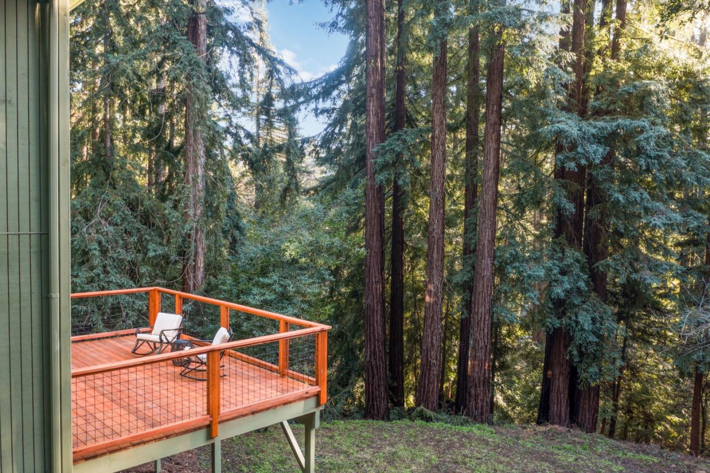 Extensively remodeled mountain home surrounded by majestic redwoods. From the 4-car parking deck, go through the grotto entry- the hallway port w/a skylight welcomes guests into the open-plan living space w/a pellet stove. The renovated kitchen has stone countertops, matching tile backsplash, newer appliances, under-cabinet lighting, and soft-close cabinets. A new redwood deck overlooks the flat open yard space. The primary bedroom offers a walk-in closet, while two other bedrooms can be guest rooms or an office. Both bathrooms have been renovated; the upstairs bathroom has a shower over a jetted soaking tub and a dual sink vanity. The basement is perfect for storage or woodworking. You'll find modern comforts, including Comcast Xfinity high-speed internet, PGE power, municipal water, propane gas, and in-unit laundry. Roof and septic are less than 4 years old. 5 minutes to downtown Boulder Creek for shopping and restaurants, or jump on Hwy 9 for a scenic beach or Silicon Valley trip.